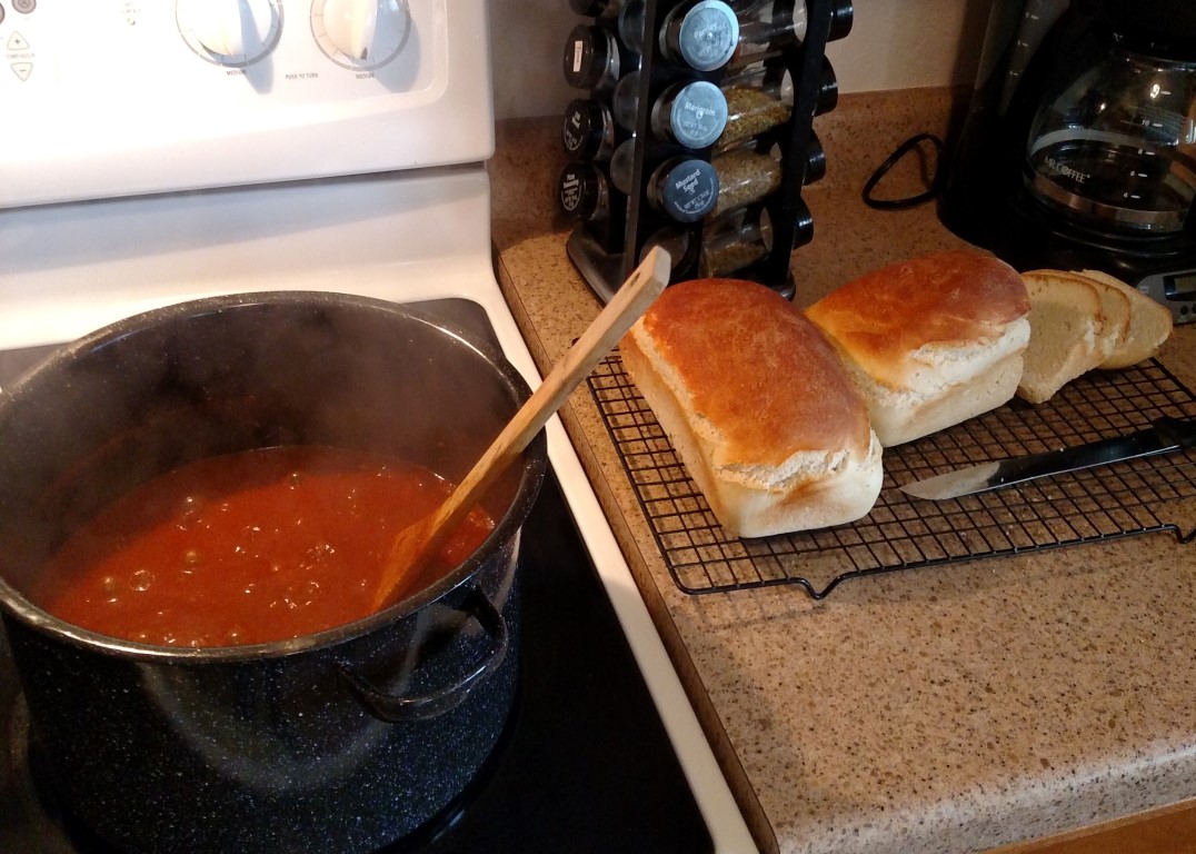 The next day husband and little one were feeling a little under the weather. We were home all day. They rested and played Go Fish. I made a little “healing food”. I took most of the last of our tomatoes from the garden and made a big pot of chili. I baked some homemade bread to go with the chili. Kind of a lot of work, but delicious!